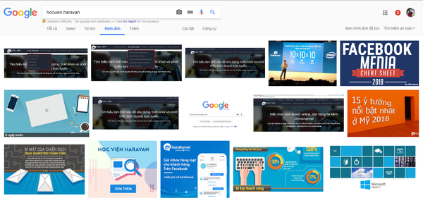 Tìm kiếm hình ảnh cho từ khóa “hocvien haravan” trên tab hình ảnh của Google
